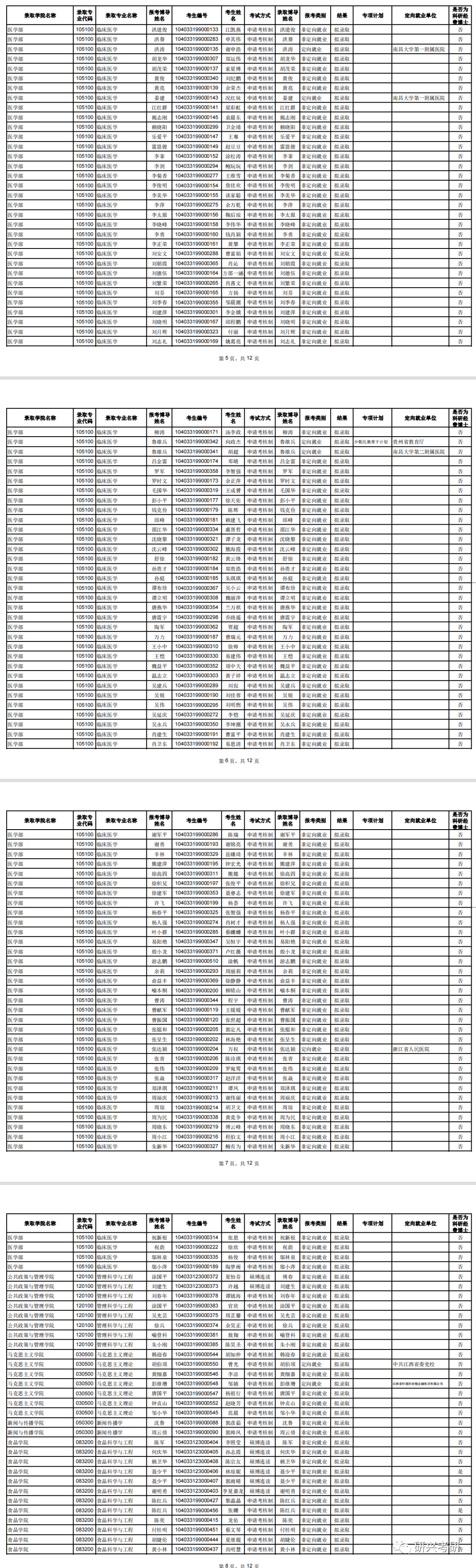 在接收录取通知书之前,请拟录取考生注意查看研究生院相关公告,与录取学院保持联系,按要求完成调档或签署定向培养协议,最终录取结果待上报江西省教育考试院和教育部,并经全国录取联合检查通过后确定。